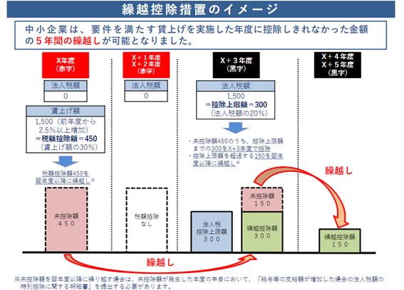 税額控除の内、控除しきれない金額が発生した場合には、翌年度以降5年間にわたって繰越しできる